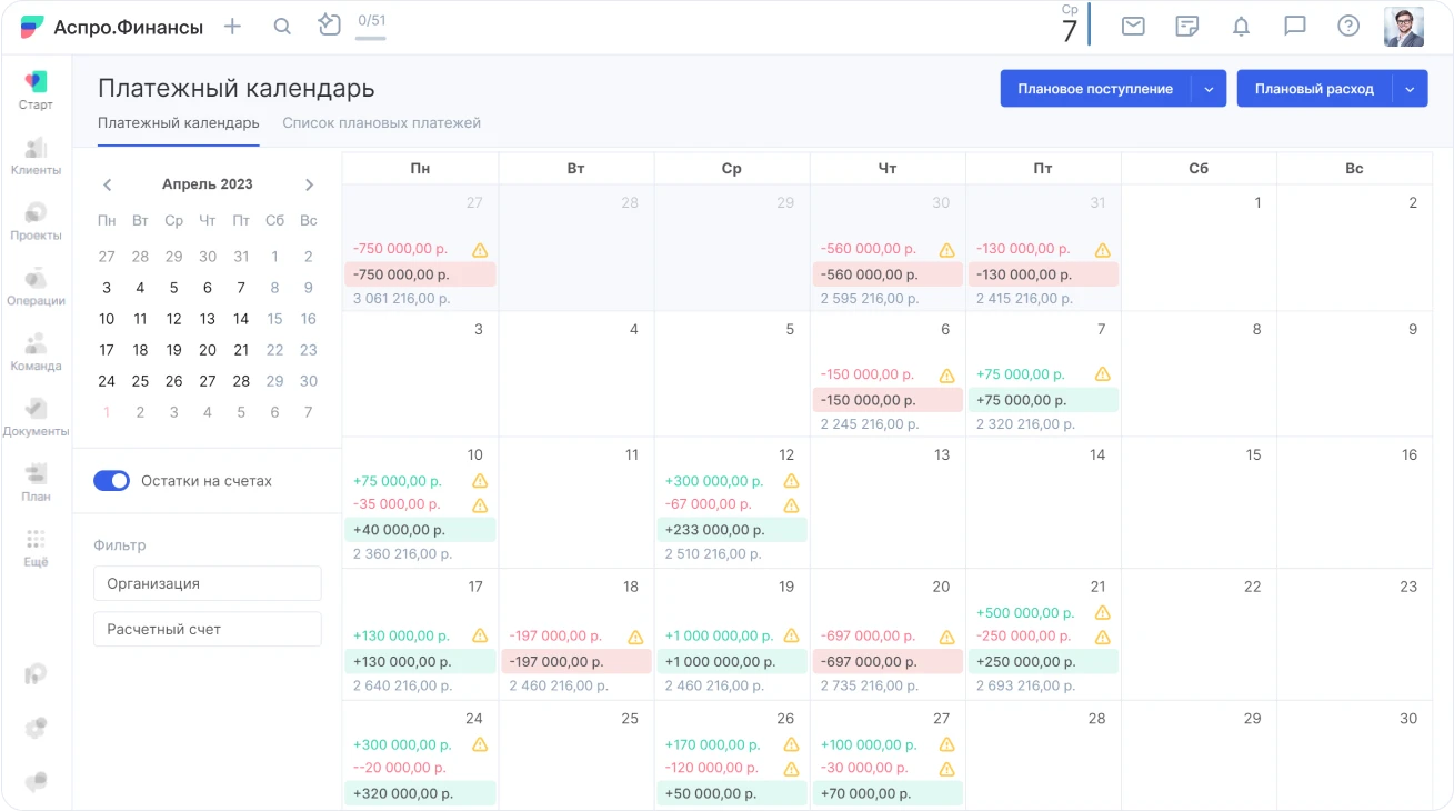 Платежный календарь в Аспро.Финансы